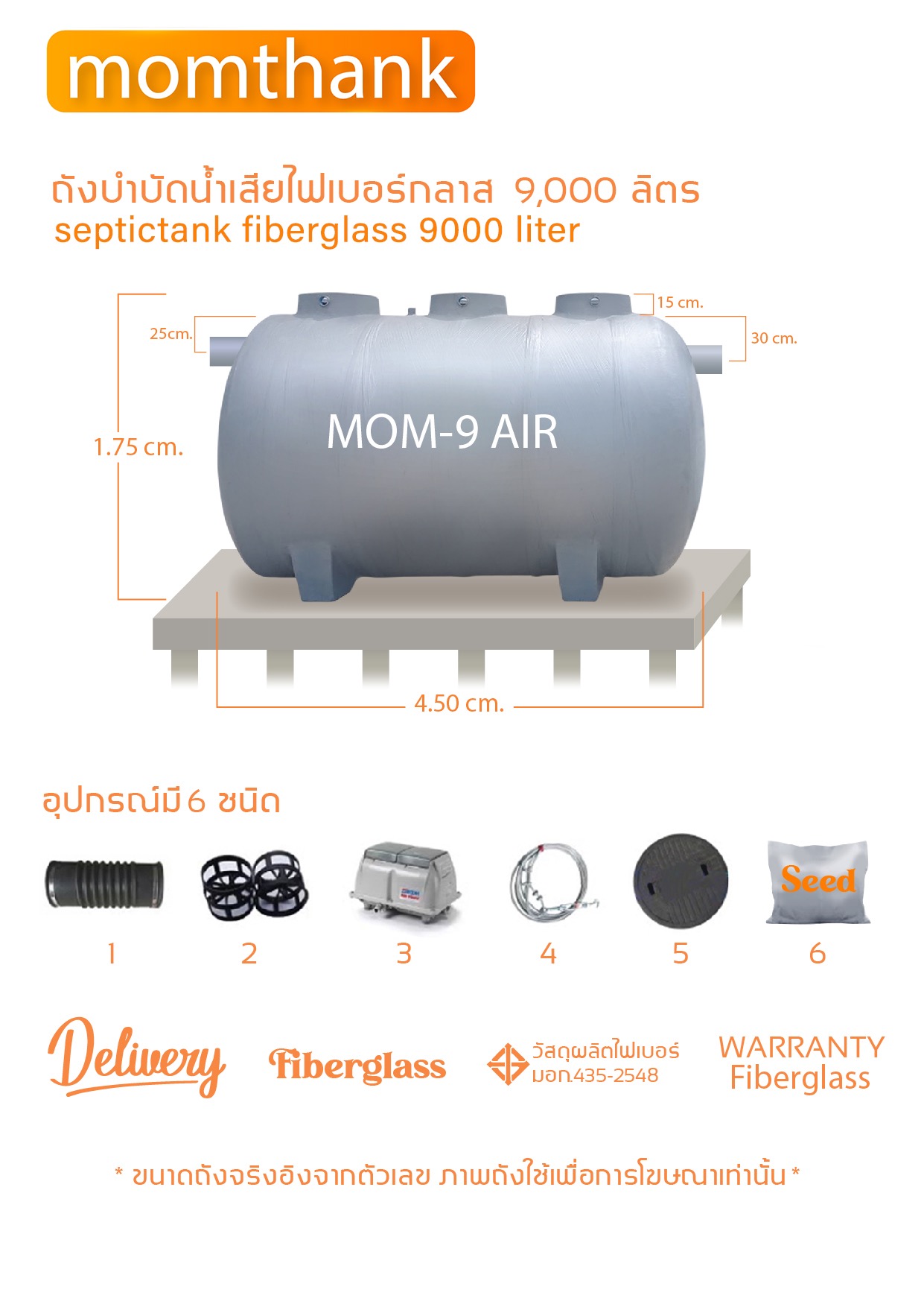ถังบำบัดน้ำเสีย 9000 ลิตร ราคาถูก แบบเติมอากาศ วัสดุไฟเบอร์กลาส(FRP) มาตรฐานคุณภาพ